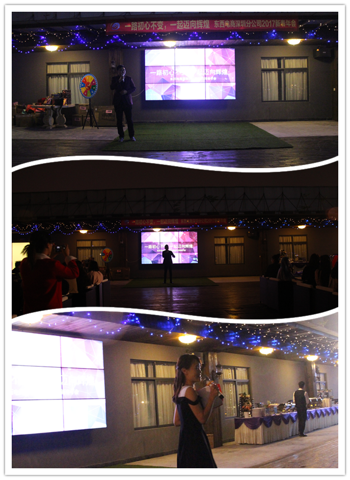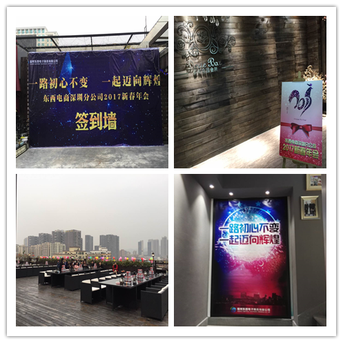 ? ? ? ??律回春暉漸,萬(wàn)象始更新,2017年 1月11日,東西電商深圳分公司舉辦了以“一路初心不變,一起邁向輝煌”為主題的2017年度迎春年會(huì)。今年的年會(huì)一改往年傳統(tǒng)的年會(huì)形式,采用戶外場(chǎng)地+西式自助晚宴的形式開展,給現(xiàn)場(chǎng)員工帶來(lái)了一場(chǎng)獨(dú)特、輕松及愉悅的年度盛會(huì)。
